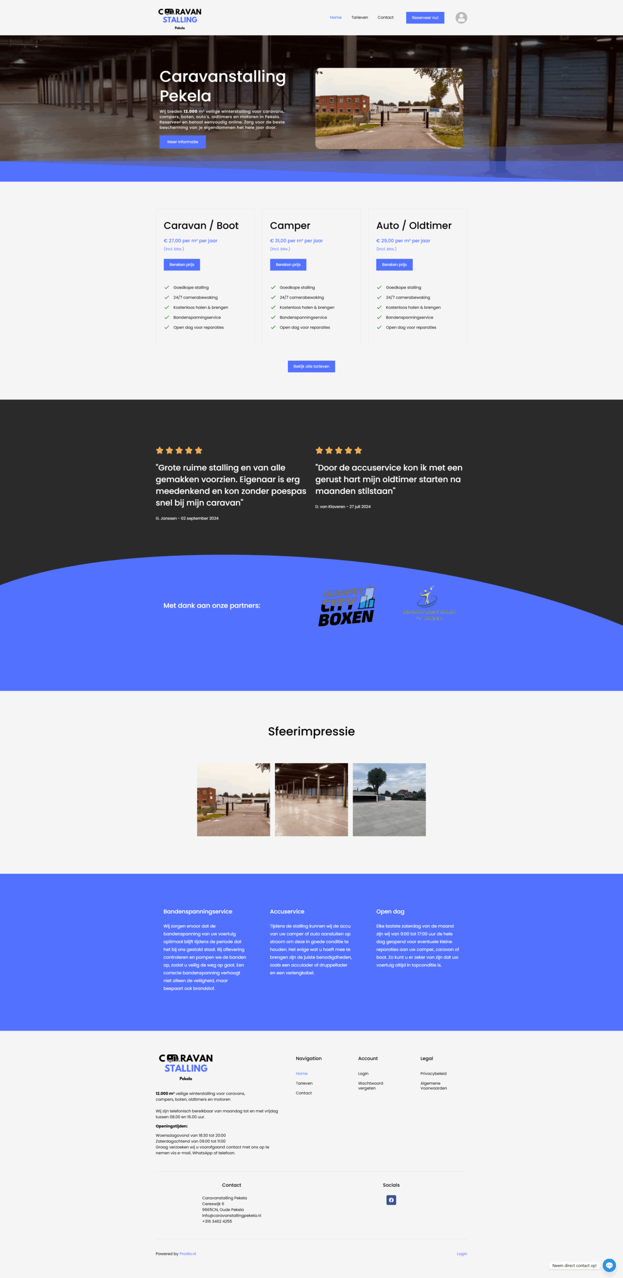 Voor Caravanstalling Pekela is een professionele website ontwikkeld met blauwe accenten. Het platform maakt geautomatiseerd beheer mogelijk, inclusief klantaccounts, PDF-facturatie en automatische SEPA-incasso’s. Een unieke custom plugin voor kentekenopzoeking stroomlijnt het verhuurproces volledig.